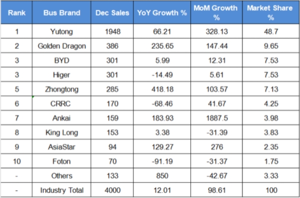 BYD Leads China New Energy Bus Export Sales in November