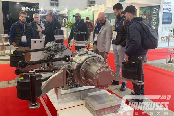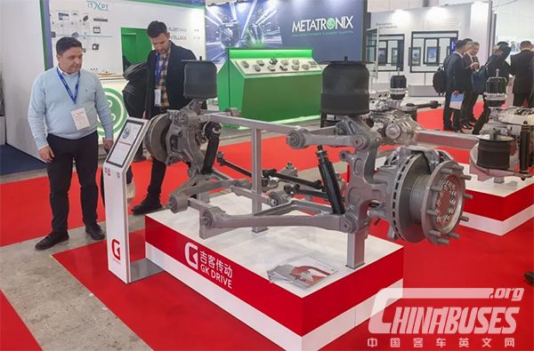 Also on display is the BRE 131 E-driven axle, engineered for large buses over 10 meters in length. Its deep-drop axle beam supports low-floor designs, facilitating easier passenger boarding and alighting. GK Drive provides integrated solutions that include axles, motors, and controllers, helping bus manufacturers reduce costs and improve efficiency. The streamlined design and reduced number of mechanical components also contribute to a lighter overall system.