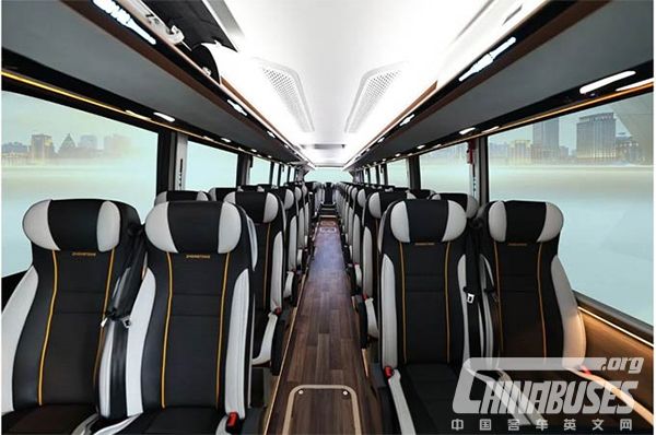 Aligned with 5A-grade healthy cabin standards, the model offers a 605mm aisle width and 440mm seat spacing. Optional features such as speed-sensitive steering assist and a zero-gravity driver’s seat further enhance onboard comfort.