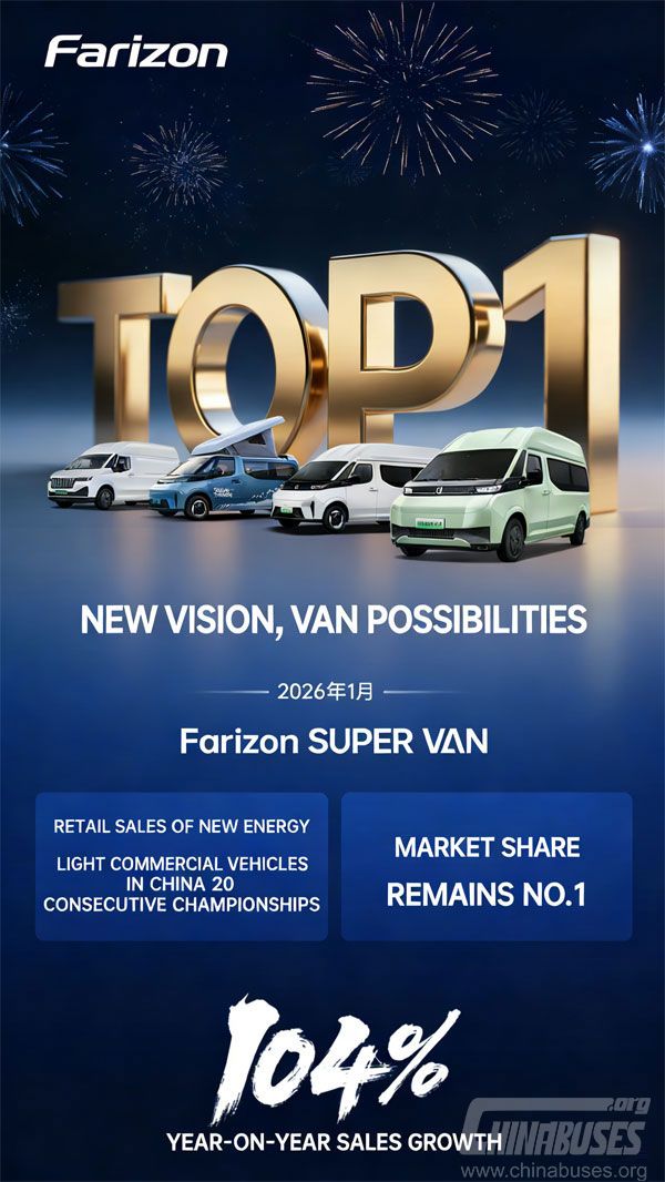 In January 2026, Farizon Super VAN got off to a strong start to the year, retaining its title as the best-selling new energy wide‑body light van and securing 20 consecutive sales championships.