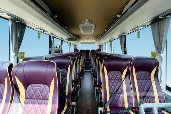 Every detail of the Ankai N90E has been meticulously crafted. Its exterior design features Chinese-inspired color schemes such as "Purple-Gold Radiance" and "Cyan Brick and Ink Tile," which harmonize with the natural and cultural landscapes of scenic areas, creating a seamless blend between vehicle and environment. The N90E innovatively adopts a dual front windshield structure paired with oversized side windows, offering a 156° ultra-wide viewing angle. Passengers can enjoy panoramic views of majestic peaks and mountain scenery from the comfort of their seats, truly realizing the vision of "driving through the landscape, touring within a painting."