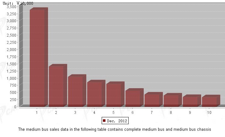 Medium Buses' Sales Data of Top Ten China Bus Builders in Dec. 2012