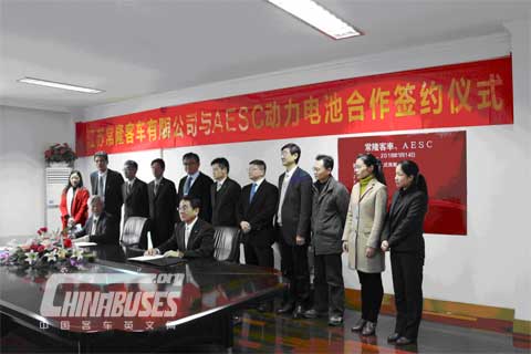 www.chinabuses.org: On 14th, Jan, 2016, Jiangsu Alfa Bus Co.,Ltd(located in Jiangyin,Jiangsu province) and AESC CO.,Ltd( located in Zama,Kanagawa) come to an agreement about li-ion battery supplying to electric bus. Senior managers from both paties attended the signing ceremony. This agreement shows that the first battery supplying is 30MWh, which can be used to 100 12-meter electric buses. Both parties expect to supply 900MWh li-ion battery until 2017, which can satisfy 3000 electric buses producing needs.
