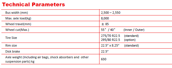 ■ Specific axle for low entrance bus application, which has high reliability based on globe resourcing strategic.